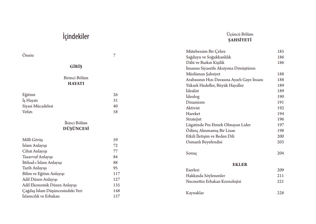 Hiç şüphe yok ki bu “öncü ve büyük insanlar”dan birisi Necmettin Erbakan’dır. Onun hayatını, düşüncesini, davasını ve şahsiyetini ele alan bu mütevazı eser insanlık ve İslam tarihinde hangi kritik noktada yer aldığını ortaya koymasının yanı sıra çeşitli hususlarda örnek alınabilecek vasıflarının hayli çok olduğunu da gün yüzüne çıkarmaktadır.