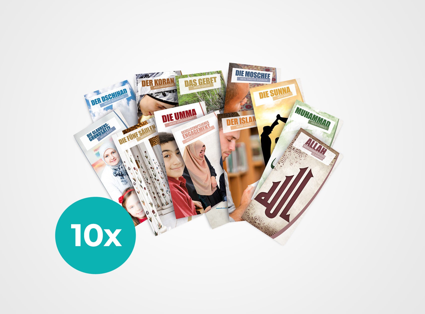 Informationen über den Islam – To go. Unsere 12-teilige Faltblattserie informiert auf ansprechende Weise über die wichtigsten Themen rund um den Islam – von Allah bis Umma. Die unkomplizierte Sprache, persönlich ansprechende Geschichten aus dem Alltag und ergänzende Informationskästchen ermöglichen einen ersten Zugang zu den Themen Islam, Allah, Koran, Muhammad, Sunna, Gebet, Fünf Säulen, Glaubensgrundsätze, gesellschaftliches Engagement, Moschee, Umma und Dschihad.