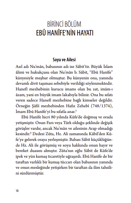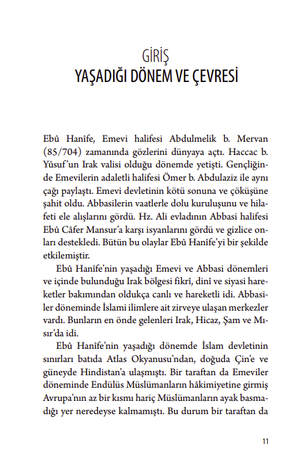 Ebû Hanîfe İslam fıkhını sistemli hâle getiren ilk şahsiyettir. İslam hukuk tarihinde kapsamlı bir fıkıh/hukuk tanımı yaparak adını tarihe yazdıran İmâm-ı Âzam Ebû Hanîfe, dünya Müslümanlarının pek çoğunun gönlünde taht kuran âlimlerdendir. Kurduğu fıkıh/hukuk akademisinde binlerce öğrenci yetiştirmiş ve binlerce meseleye çözüm üretmiştir. Yetmiş yıllık ömrünü ilim ve amel ile geçirerek Müslüman âlimler için rol model olmuştur.