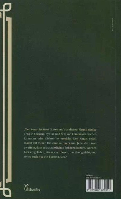 Der Koran ist Wort Gottes und aus diesem Grund einzigartig in Sprache, Syntax und Stil; von keinem arabischen Literaten oder Dichter je erreicht. Der Koran selbst macht auf diesen Umstand aufmerksam. Jene, die daran zweifeln, dass er aus göttlichen Sphären kommt, werden hier eingeladen, etwas vorzulegen, das dem gleicht, und sei es auch nur ein kurzes Stück.