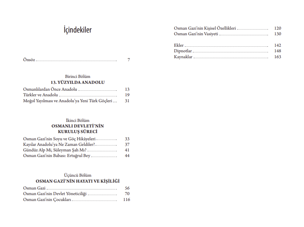Kuruluşundan yüz elli yıl sonra bir cihan devletine dönüşen Osmanlı Beyliği’nin yükselişinin sırrı Osman Gazi gibi büyük bir lidere sahip olmasında gizlidir. Çevresindeki ilim adamlarını, gönül sultanlarını, gazileri ve alpleri civarında toplamayı başaran Osman Gazi bunların gücünü kendi gücüyle birleştirmeyi başarmıştır.